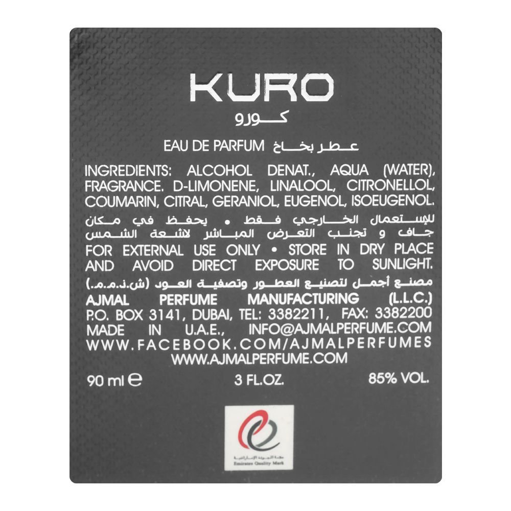 Ajmal Kuro EDP 90ml is a spicy evocative fragrance for men. It has a fresh and energizing scent that leaves a lovely impression on people. With the top notes of bergamot and pepper, this perfume allows your personality to outshine others. Geranium and lavender in the heart note add depth to your personality, while patchouli, vetiver, and ambergris provide an enchanting and emotive base note in the scent. It is a versatile scent that can be used anywhere. It is appropriate for both every day and special events. It is also durable and allows you to enjoy the scent throughout the day.