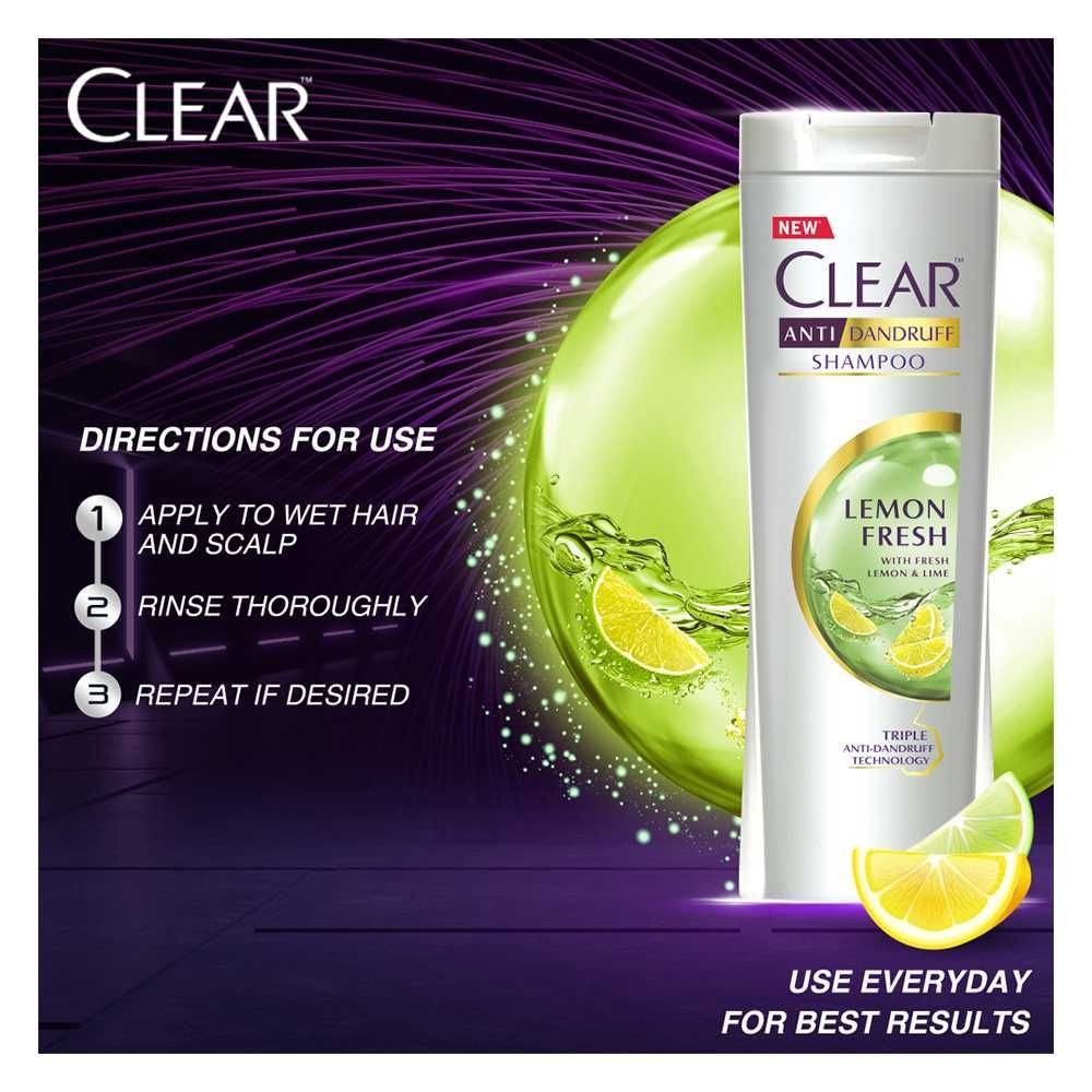 When it comes to using a shampoo, one has to consider the needs and condition of hair and scalp. Hair conditions such as greasiness, hair loss and dandruff requires a suitable grooming product. To remedy these problems, Clear Lemon Fresh Triple Anti-Dandruff Shampoo can help you. With its triple anti-dandruff technology it battles off dandruff and removes it, leaving your scalp clean, fresh and healthy. Lemon and lime essentials take away the excess oil to provide a grease-free texture to your hair. The fragrance of a shampoo also matters, and this shampoo has a spicy and citrus scent of fresh lemon and lime.