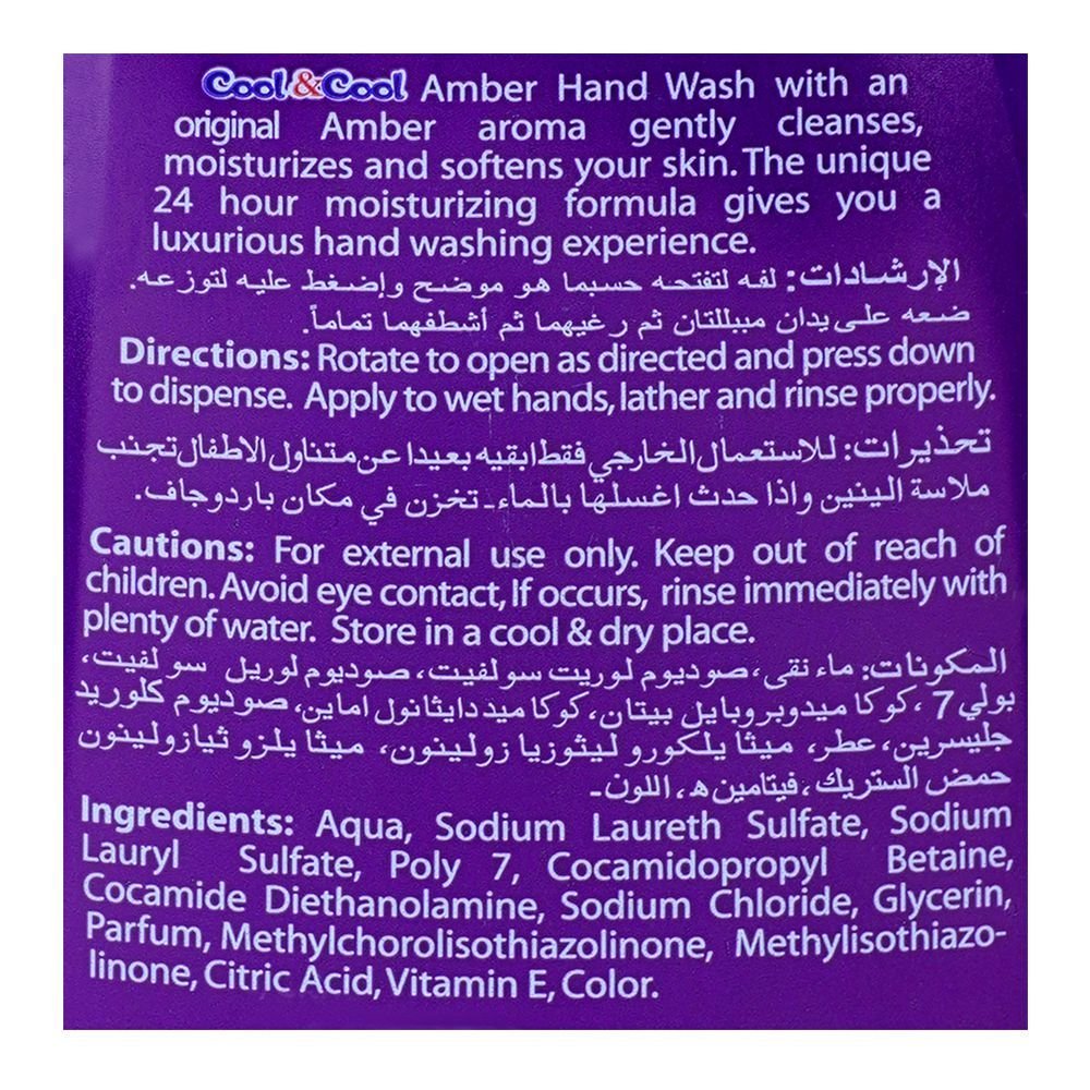 Ensure superior hand hygiene with Cool & Cool Amber Anti-Bacterial Hand Wash 500ml. This premium hand wash combines effective germ protection with a luxurious amber scent, providing a refreshing and thorough cleanse. This powerful handwash is formulated with anti-bacterial agents to eliminate 99.9% of germs to ensure that your hands are safe and clean.