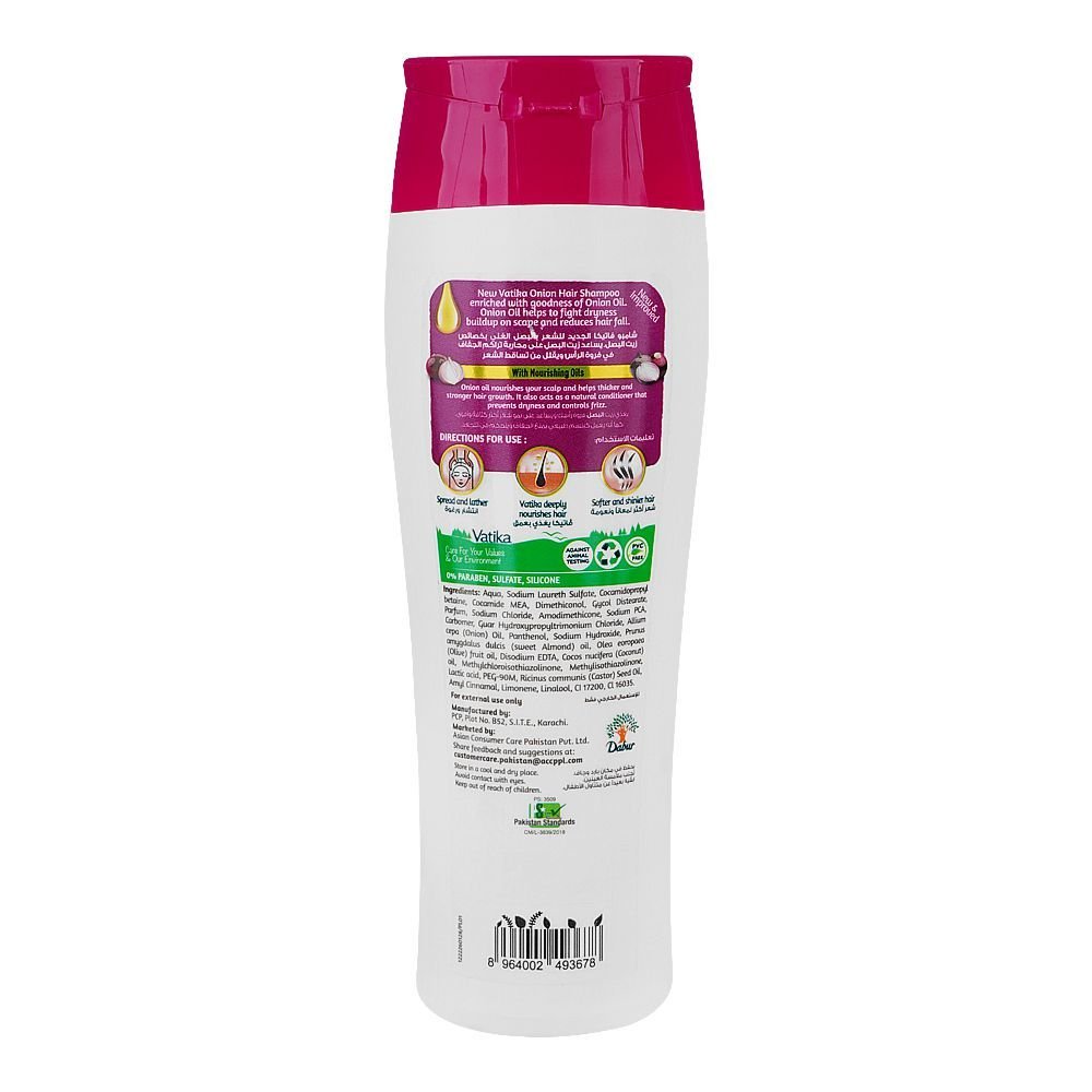Dabur Vatika Onion Nourishing Oil Hair Fall Control Shampoo is enriched with the goodness of onion oil, which is known for its ability to reduce hair fall and promote hair growth. This nourishing shampoo deeply cleanses the scalp while strengthening hair from root to tip. It works to prevent hair breakage, enhance hair texture, and restore natural shine. The formula also helps to rejuvenate the scalp and minimize dandruff, providing healthy, thicker, and more voluminous hair.