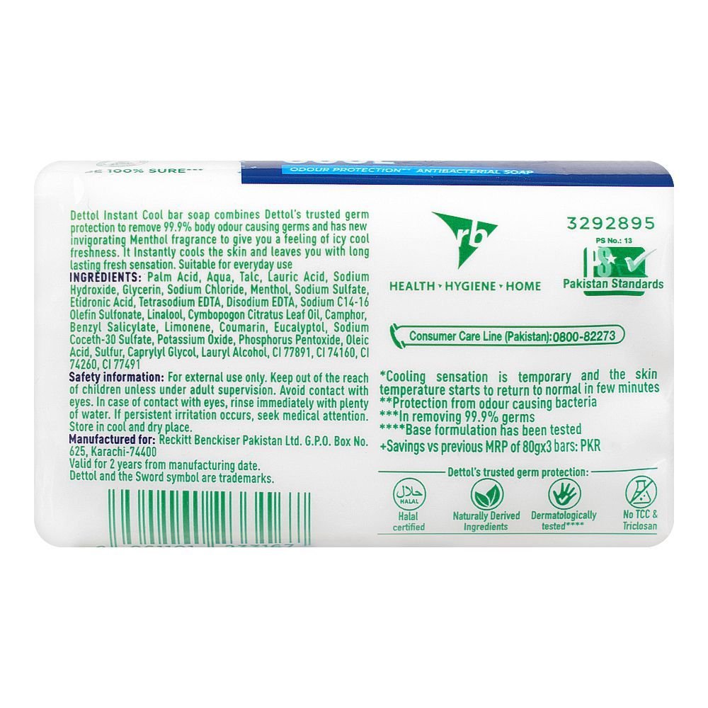 Dettol Cool Soap 3x80gm is designed for a refreshing cleanse, combining antibacterial protection with a cooling sensation. Enriched with menthol, it provides an instant cooling effect that is perfect for hot or humid days. This soap effectively eliminates 99.9% of germs, ensuring superior hygiene while maintaining skin’s natural moisture. Its refreshing fragrance energizes your senses, leaving you feeling fresh and revitalized. The three-bar pack offers great value, ensuring long-term use for families seeking reliable cleanliness and freshness.