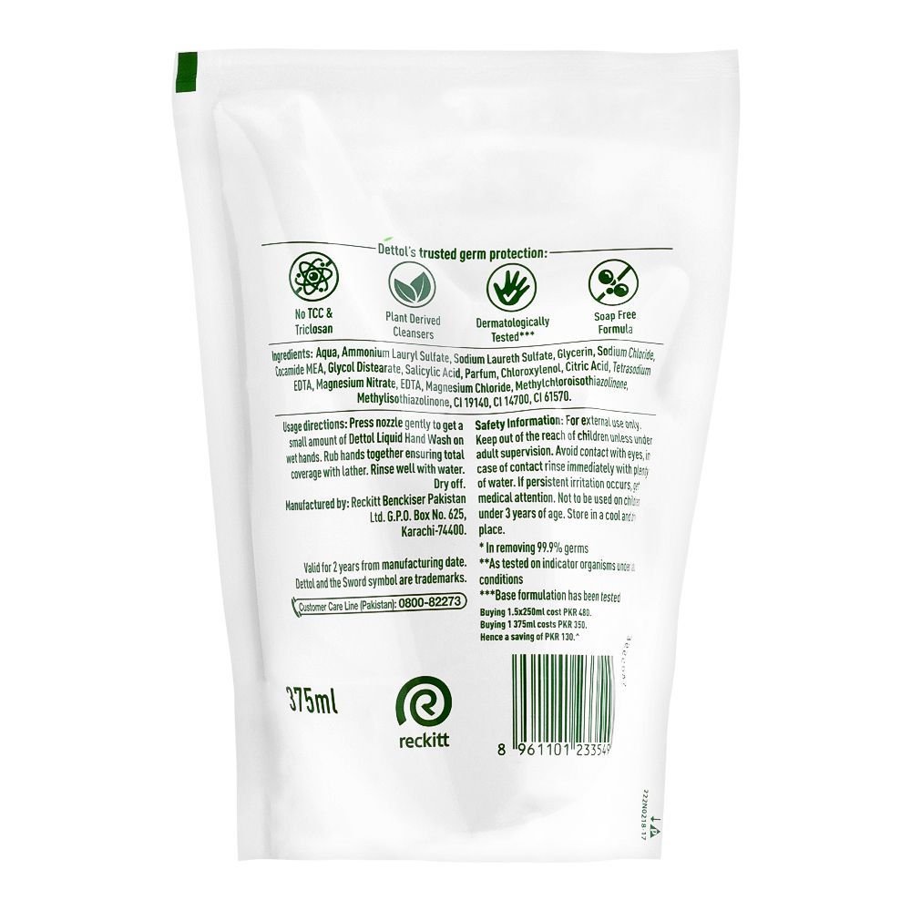 Dettol Original Anti-Bacterial Hand Wash, Pouch Refill Saver Pack, 375ml