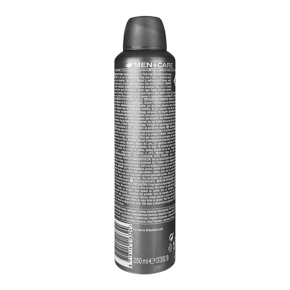 Dove Men+Care Clean Comfort Anti-Perspirant Deodorant Spray 250ml offers long-lasting protection against sweat and odor for up to 48 hours. Designed specifically for men, this antiperspirant spray combines effective sweat protection with Dove’s unique moisturizing technology to protect skin from irritation. The clean, crisp scent leaves you feeling fresh and comfortable throughout the day. This deodorant spray is specially formulated to leave no white marks on 100 colors, making sure your clothes stay stain-free. Ideal for everyday use, this deodorant spray helps to keep you dry and confident, no matter what your day holds.