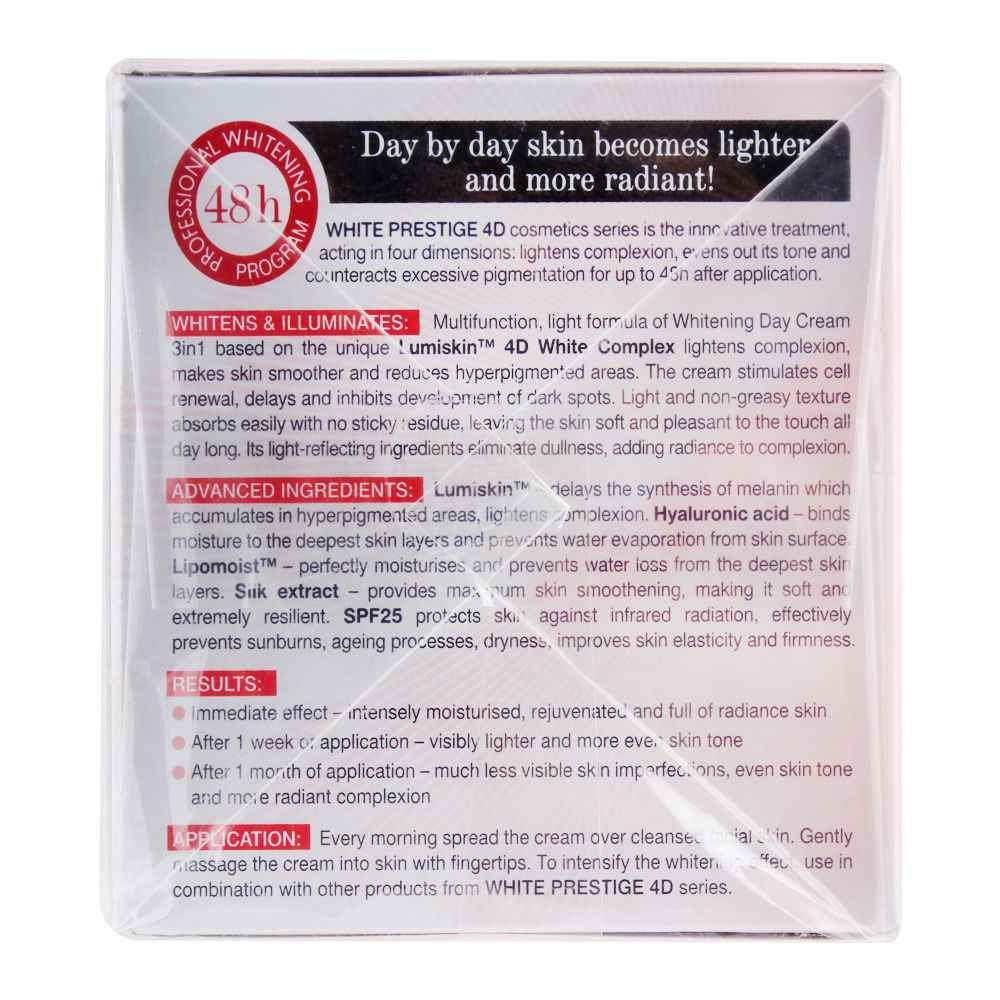 Eveline 3-In-1 White Prestige 4D Whitening Day Cream, SPF 25, Hyaluronic, 50ml