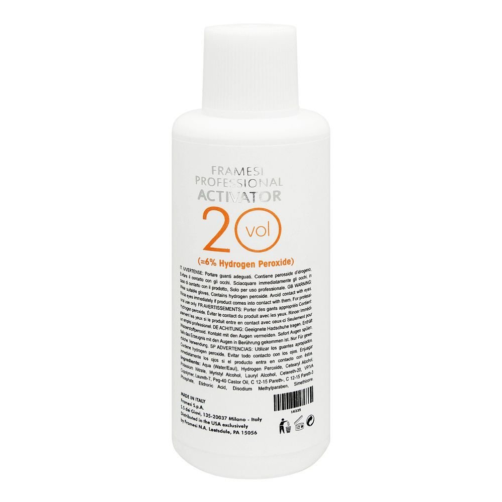 Framesi Professional Activator is a hair developer that works particularly well for oxidative dyes. It is suitable for both lightening and coloring needs. The product contains elements of conditioning agents that protect the hair from damage and dryness. When done, your hair is left feeling intensely soft and brilliantly shiny. Framesi professional activator is a liquid cream activator with an effective system of ingredients and quality for perfect condition, shine and color penetration deeper into the roots. For best results use with framesi hair color and lighteners.
