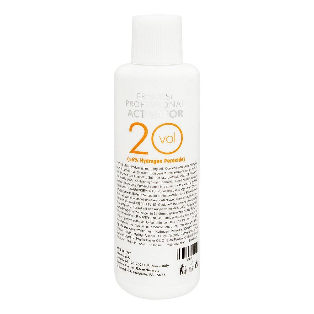 Exclusively formulated to maximize the qualities of shades, Framesi professional activator has a creamy consistency that creates a beautiful color mix that is easy to apply with no running or dripping. The cream activator ensures a luxurious cosmetic feel on the hair. Creamy emulsion of hydrogen peroxide at 6% formula is balanced and ensures high color penetration in the hair for a long lasting color. It acts gently, totally respecting both scalp and hair fibre. Suggested for customers with sensitive and delicate scalp, minimizes the risk of allergy and irritation. The ingredients ensures the best color performances, 100% grey coverage, intense and bright shades and extraordinary long-lasting colors.