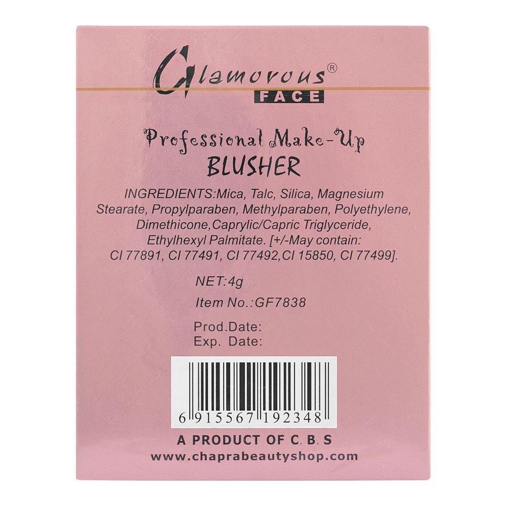 Elevate your makeup game with the Glamorous Face Professional Make-Up Blusher in shade #02 GF7838. This exquisite blusher adds a touch of radiant color to your cheeks, creating a captivating and natural flush. With its finely milled formula, it glides effortlessly on your skin, leaving a seamless finish that enhances your overall look. Whether you are going for a subtle everyday glow or a dazzling evening look, this blusher is your go-to choice.