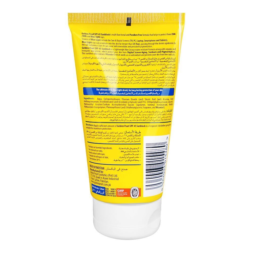 Golden Pearl Triple Protection UVA+UVB & Blue Light Sun Block, SPF45, 120ml