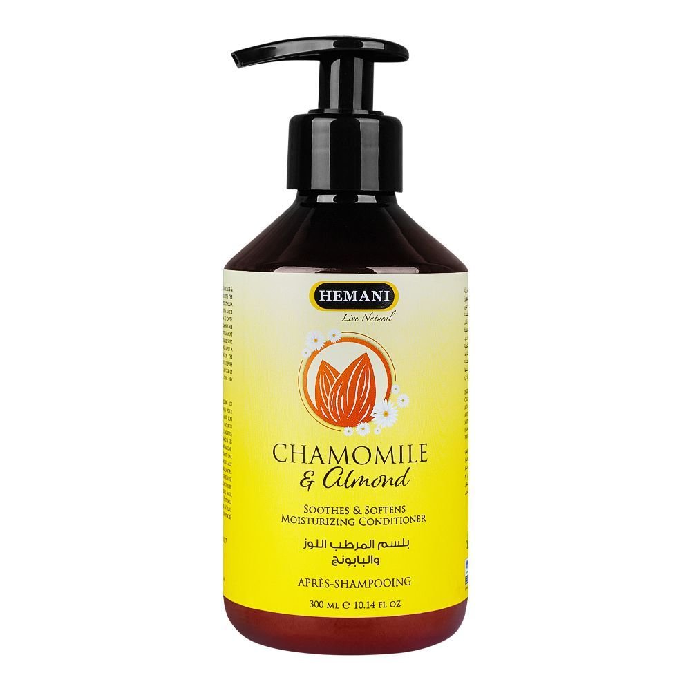 Discover the luxurious care of Hemani Chamomile & Almond Moisturizing Conditioner, made to hydrate and revitalize your hair. This enriching formula blends the soothing properties of chamomile with the nourishing benefits of almond oil, providing deep moisture and enhancing hair’s natural shine. Pamper your hair with the goodness of chamomile and almond oil for visibly healthier and more radiant hair.