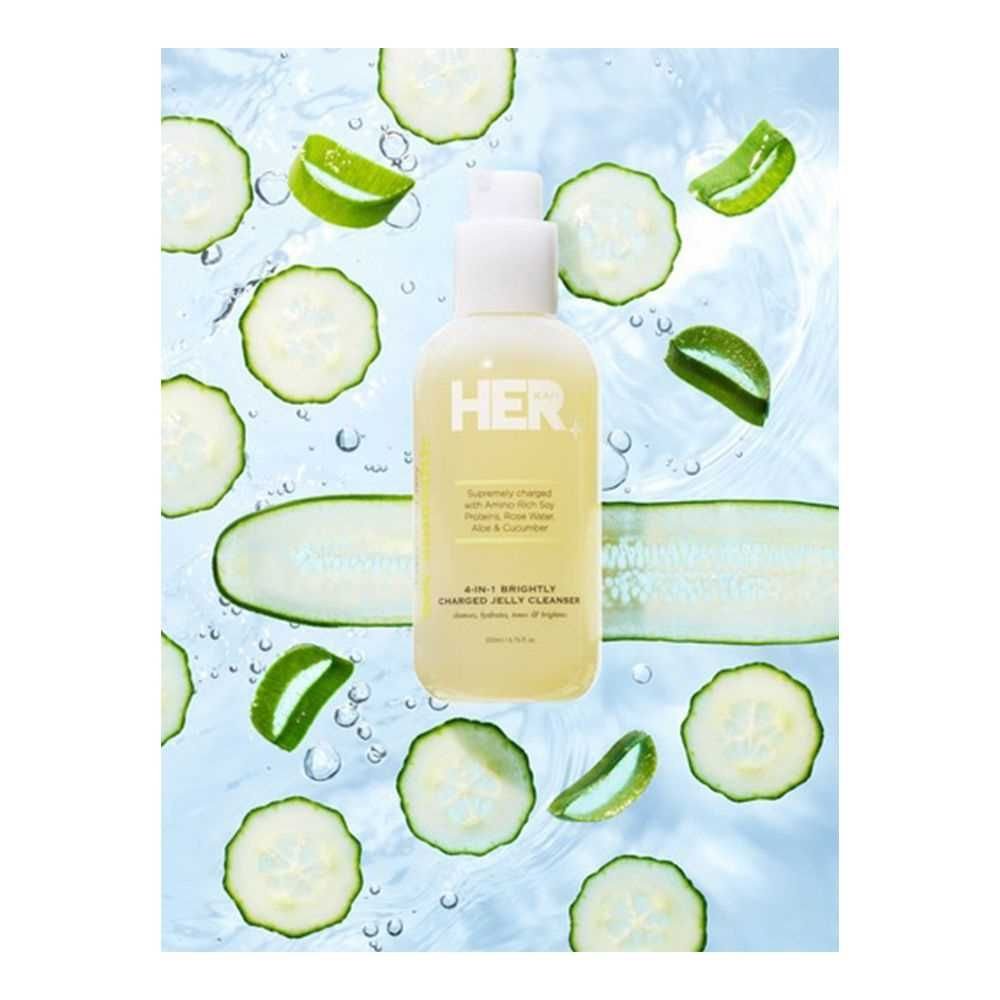 Discover the benefits of Her Beauty Soy Smoothie 4-in-1 Brightly Charged Jelly Cleanser 200ml and enhance your skincare game. This multi-tasking cleanser is a powerhouse of goodness with amino-rich soy proteins, soothing aloe, calming cucumber, and enriching rose water. Enhance your skincare regimen as it deep cleanses, removes makeup, tones, and textures your skin. Observe the healthy skin, elasticity, and hydration, which leaves you with a supple, plump, and radiant complexion. This water-enriched formula ensures your skin barrier stays strong, giving your skin the bounce, it craves. Revitalize your routine with this jelly cleanser that does it all, embracing your skin in the nourishment it deserves.