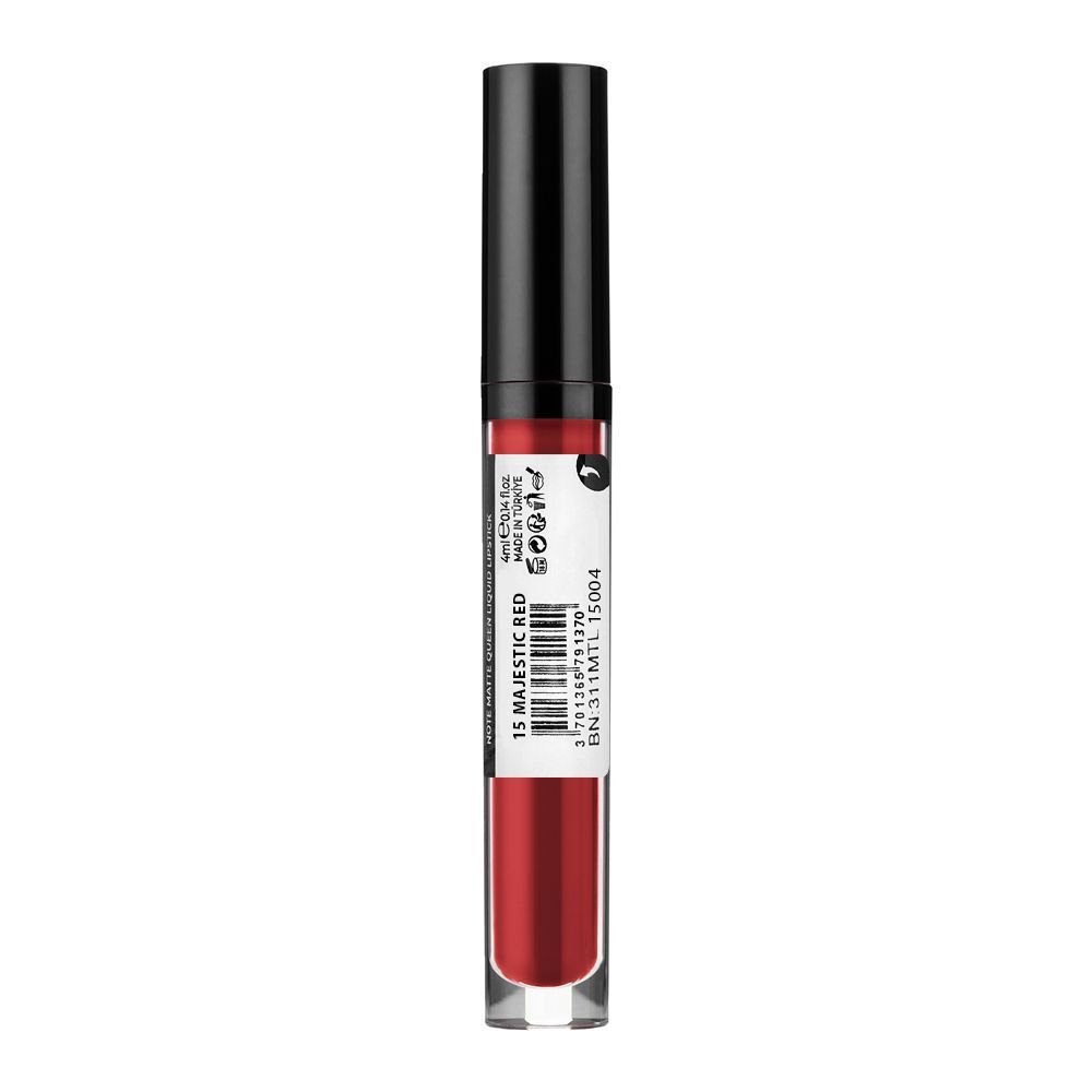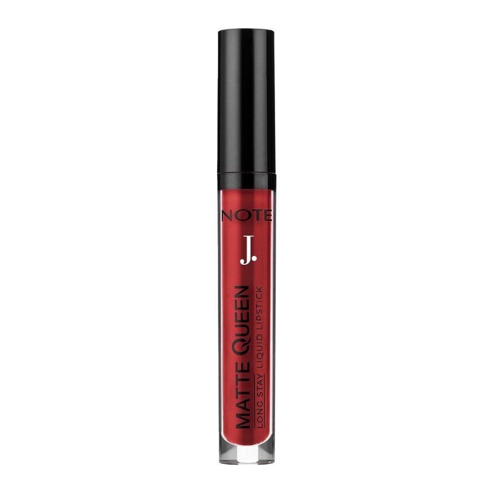 J. Note Matte Queen Long Stay Liquid Lipstick 15 Majestic Red delivers a rich, deep red with a matte finish. This lipstick is perfect for those who love a timeless red lip but want a modern touch. The formula provides full coverage with intense pigmentation and a velvet matte finish that stays on throughout the day or night. The comfortable, long-wearing formula ensures that your lips remain soft and smooth, without cracking or feeling dry. Whether you’re attending a special event or enjoying a night out, Majestic Red is the ideal choice for an elegant, confident look.