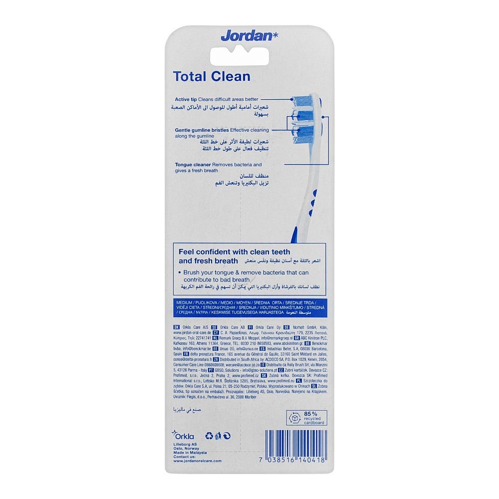 The Jordan White Mouth Total Clean Toothbrush Medium 4’s is designed to provide comprehensive cleaning and comfort for your daily oral hygiene routine. These toothbrushes feature medium bristles that effectively remove plaque and debris while remaining gentle on gums, making them suitable for regular use. Each pack includes four toothbrushes, ensuring you have an ample supply for family use and regular replacements. The ergonomic handle is designed for a comfortable grip, facilitating precise brushing and optimal dental care.