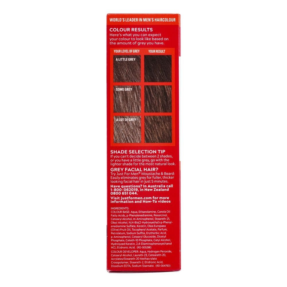 Just For Men’s shampoo-in hair color is here to give you an at-home dyeing experience. Take a break from white and take a trip to the darker side in just 5 minutes using Dark brown shade. This coloring shampoo has a non-drip consistency and provides an even-coverage to grey hair. It contains nourishing ingredients such as chamomile, aloe, vitamin E and protein which leave your hair healthier than before. It is also ammonia-free that ensures damage-free results. The results after-dye may vary due to your natural hair color.
