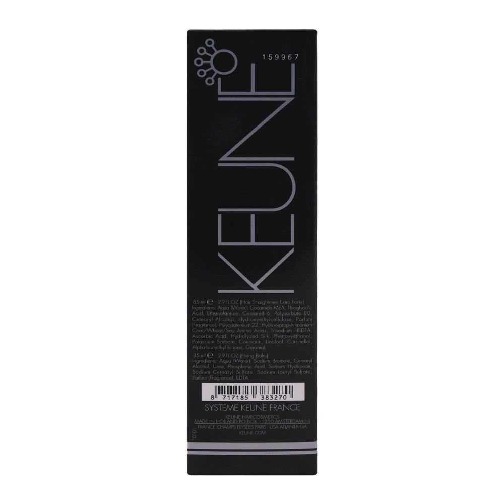 Keune offers a hair straightening package of two products to give hair a smooth and straight look. The pack contains hair straightening cream along with a fixing balm to make curly hair more manageable. Keune’s Hair Straightener Extra Forte Cream is enriched with silk proteins that help keep the hair strong and healthy. It contains keratin (K+) that leaves the hair shiny, straight and lively. The fixing balm adds a long lasting finishing touch. This treatment can be done on all types of hair, but it is not recommended for color-treated, permed or bleached hair.