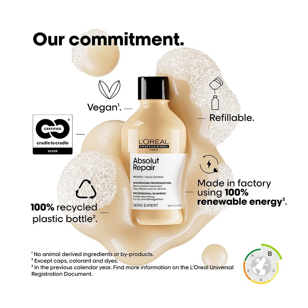 Elevate your hair care experience with L’Oreal Professionnel Serie Expert Absolute Repair Shampoo. It’s the secret to resurfaced, revitalized, and salon-worthy hair.