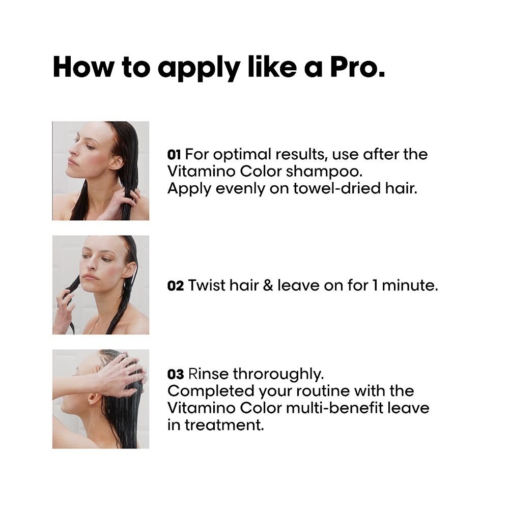 Rediscover the radiance of your color-treated hair with L’Oreal Professionnel Serie Expert Vitamino Mask – your key to long-lasting color brilliance and hair health.