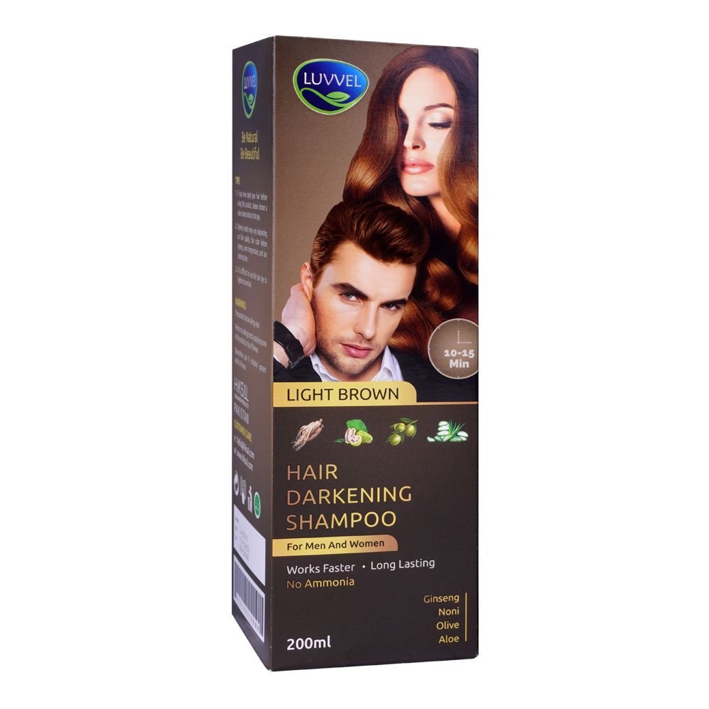 Luvvel Hair Darkening Shampoo Light Brown 200ml is a premium solution designed for both men and women seeking a natural look. Enriched with botanical extracts and essential nutrients, this shampoo gently cleanses while gradually darkening hair to a rich, dark brown shade. Its advanced formula enhances hair’s natural color without the use of harsh chemicals, ensuring a safe and gentle application. Regular use results in vibrant, healthy-looking hair with a natural shine. Ideal for covering grays or enhancing natural brown tones, this shampoo offers an easy, mess-free way to maintain a fresh appearance. Suitable for all hair types, it leaves hair feeling soft, smooth, and vibrant.