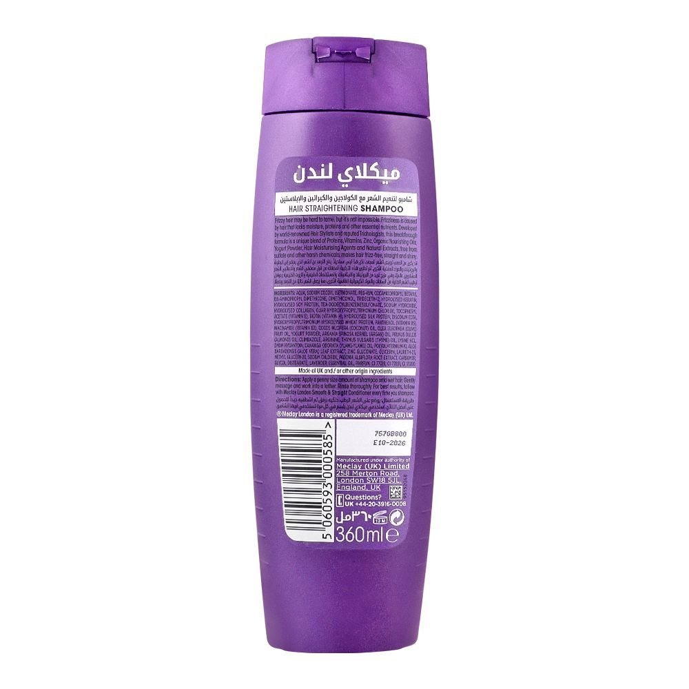 Meclay London Collagen Keratin Elastin Smooth & Straight Shampoo 360ml is a luxurious shampoo that restores and profoundly nourishes damaged hair and is the ultimate solution for beautifully straight and silky hair. Collagen, keratin, and elastin are combined in this cutting-edge recipe to give your locks the sleek perfection they deserve. This shampoo is made to deeply hydrate and nourish your hair, leaving it velvety soft, and manageable. Say goodbye to frizz and hello to an all-day, salon-quality finish. The shampoo is suitable for daily use because it is also devoid of sulfates and other harsh ingredients.