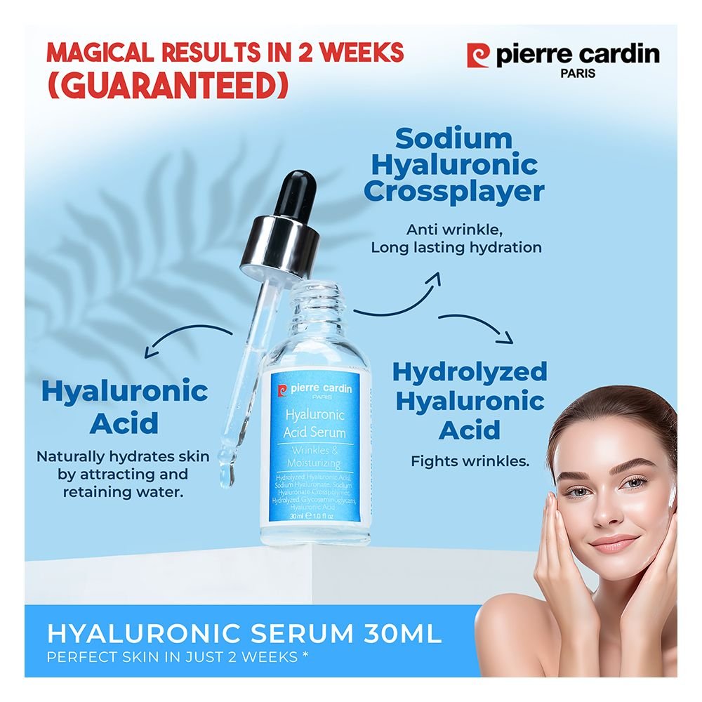 Pierre Cardin Paris Hyaluronic Acid Serum, For Plump Smooth Skin, Intense Moisture Boost, 30ml