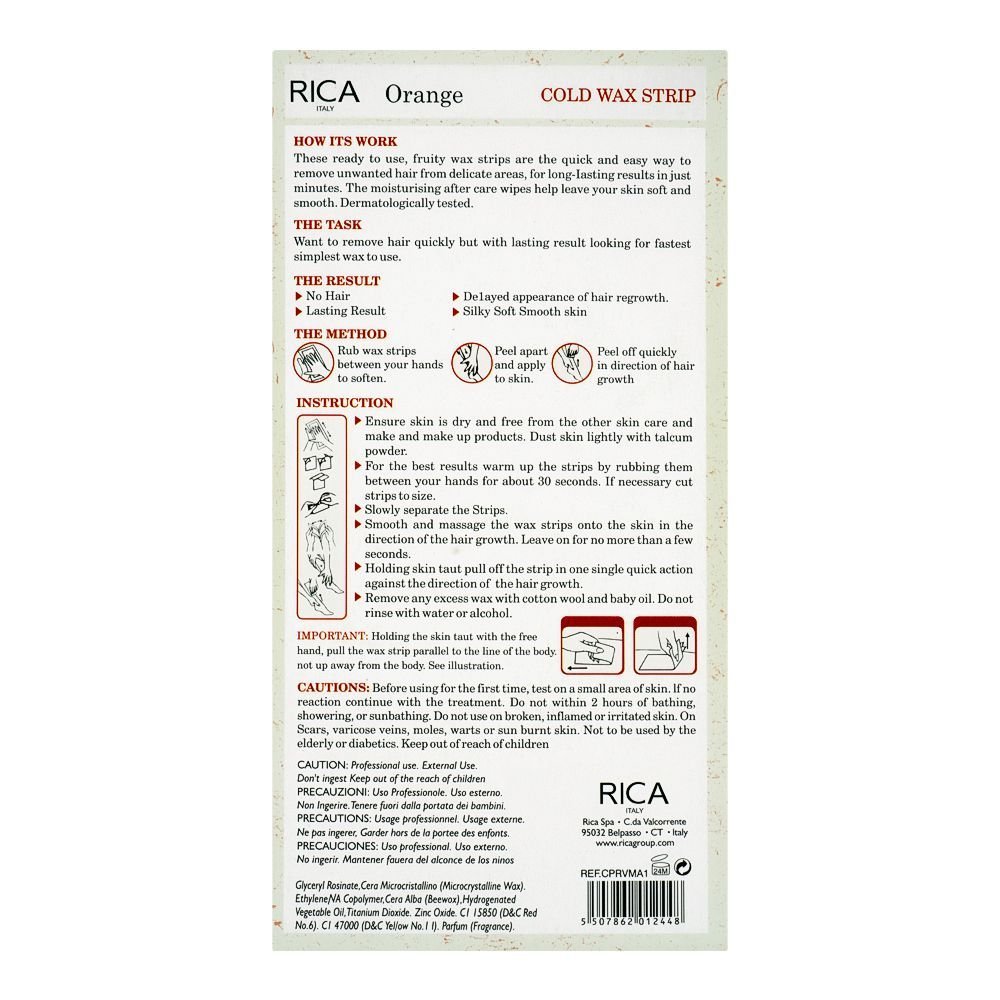RICA Orange Cold Wax Strips, For Legs & Body, All Skin Types, 20-Pack