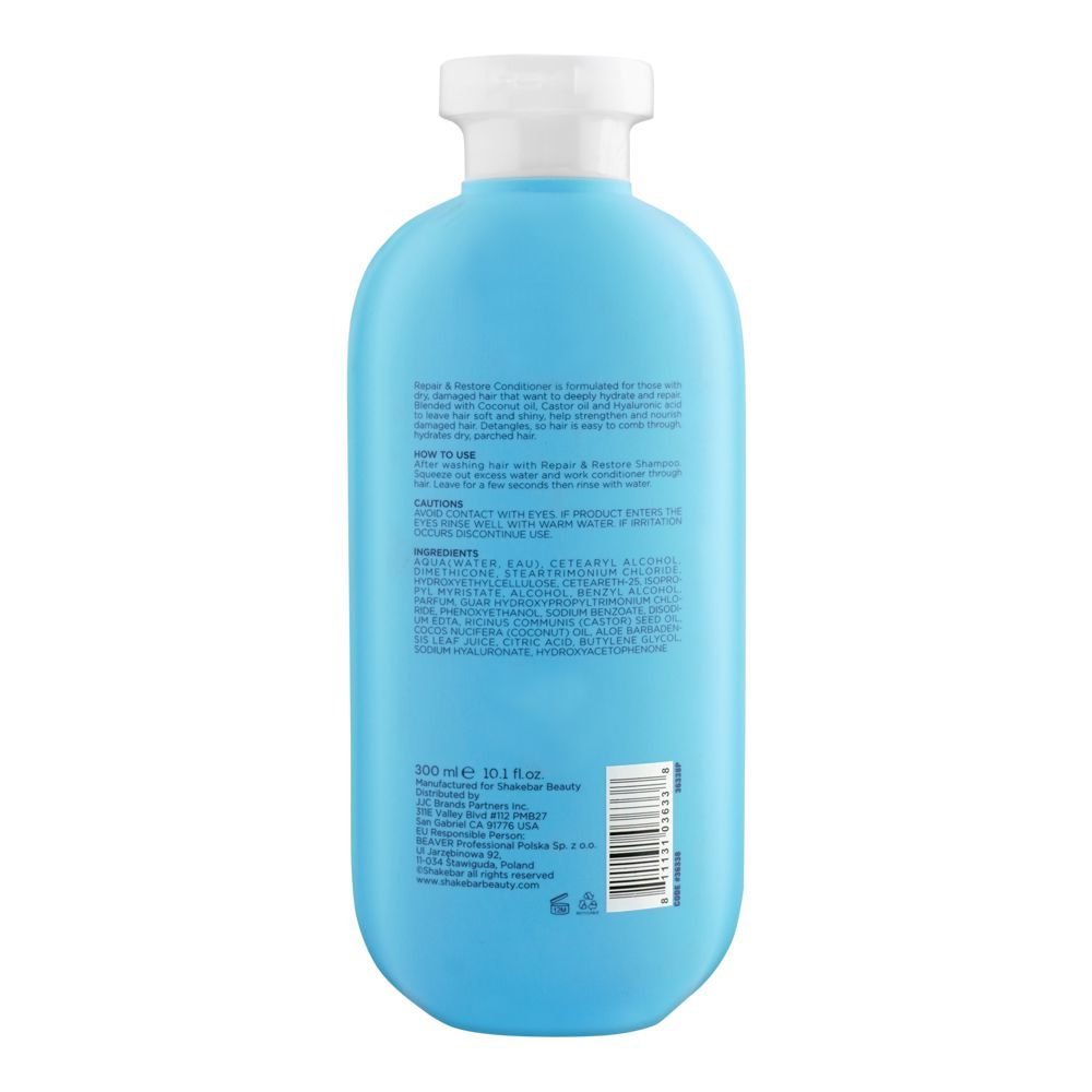 Infuse your dry, damaged locks with life and luminosity using the Shakebar Repair & Restore Sulfate & Paraben Free Dry, Damaged Hair Conditioner 300ml. This nourishing formula, free of harsh sulfates and parabens, gently detangles, hydrates, and repairs, leaving your hair feeling soft, smooth, and revitalized. Immerse your locks in a luxurious blend of potent ingredients that go beyond the ordinary to transform your hair care routine. The lightweight formula detangles without weighing down your hair, leaving it bouncy and full of life. This unique conditioner is a must-have for those seeking vibrant, healthy tresses.