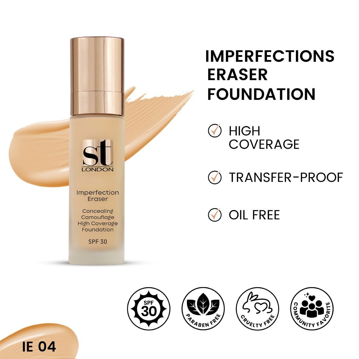 Your skin is smoothed, brightened, and concealed with the multi-layered fluid formula of the ST London Imperfection Eraser-IE 04. With its medium to high buildable coverage and smooth matte finish, this product is suitable for all skin types. It provides necessary UV protection with SPF 30 and is water-and contact-proof, so your makeup will look flawless all day.