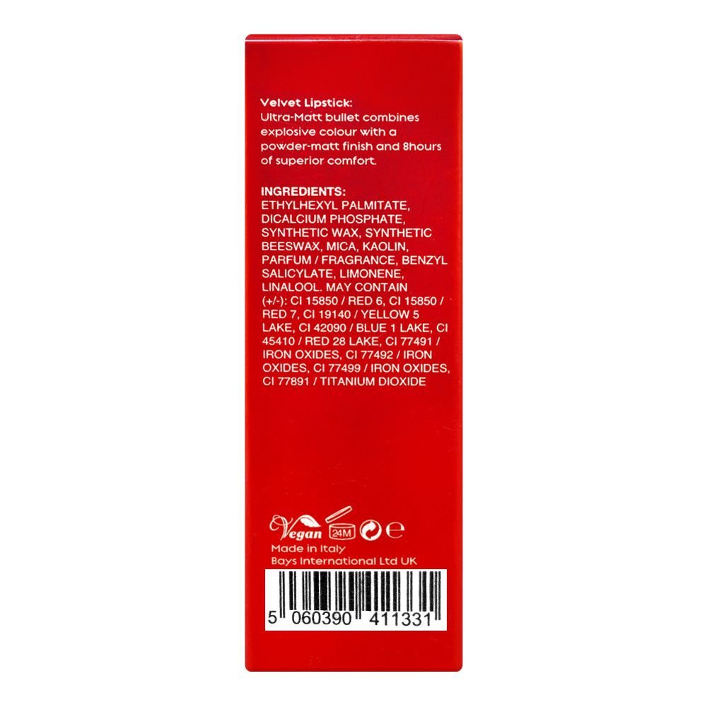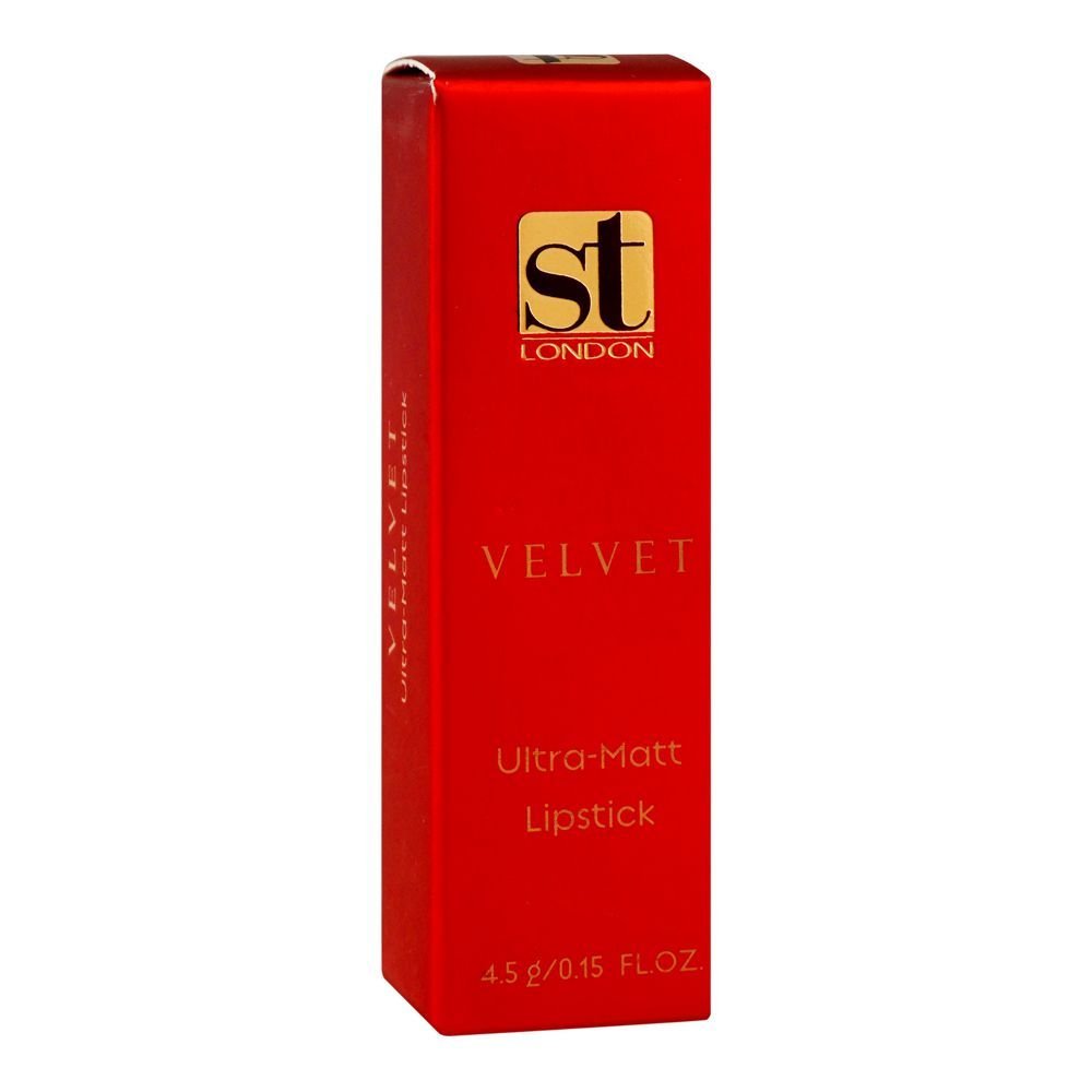 The highest level of comfort and striking color is provided by the ST London Velvet Ultra Matt Lipstick-High Voltage. This ultra-matte bullet lipstick maintains your lips looking amazing and vibrant all day long with its rich color result and 8-hour wear period. The creamy, light formulation applies evenly and produces vibrant, flawless color in a one stroke. A lovely, powdery-matte texture is achieved after drying.