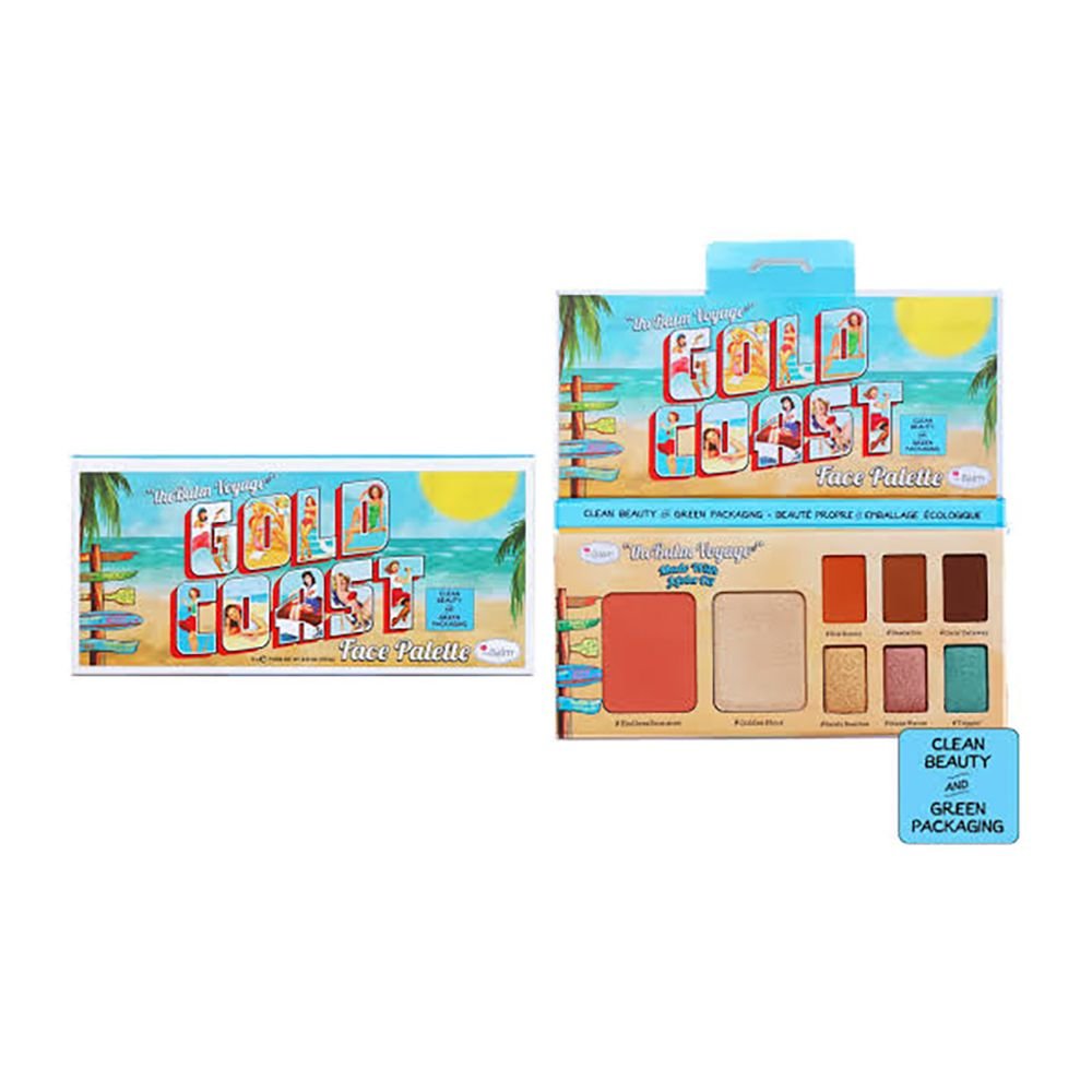 Introducing The Balm Voyage Gold Coast Face Palette, a luxurious makeup palette that embodies the essence of coastal glamour and sophistication. This versatile palette features a curated selection of face powders, including blushes, bronzers, and highlighters, designed to enhance your natural beauty and create endless makeup looks for any occasion. Each powder in the palette is formulated with high-quality ingredients to ensure smooth application, effortless blending, and long-lasting wear. The finely milled powders deliver a buildable color payoff and a silky-smooth finish for a flawless look every time. Mix and match the shades to customize your look and create endless makeup possibilities.