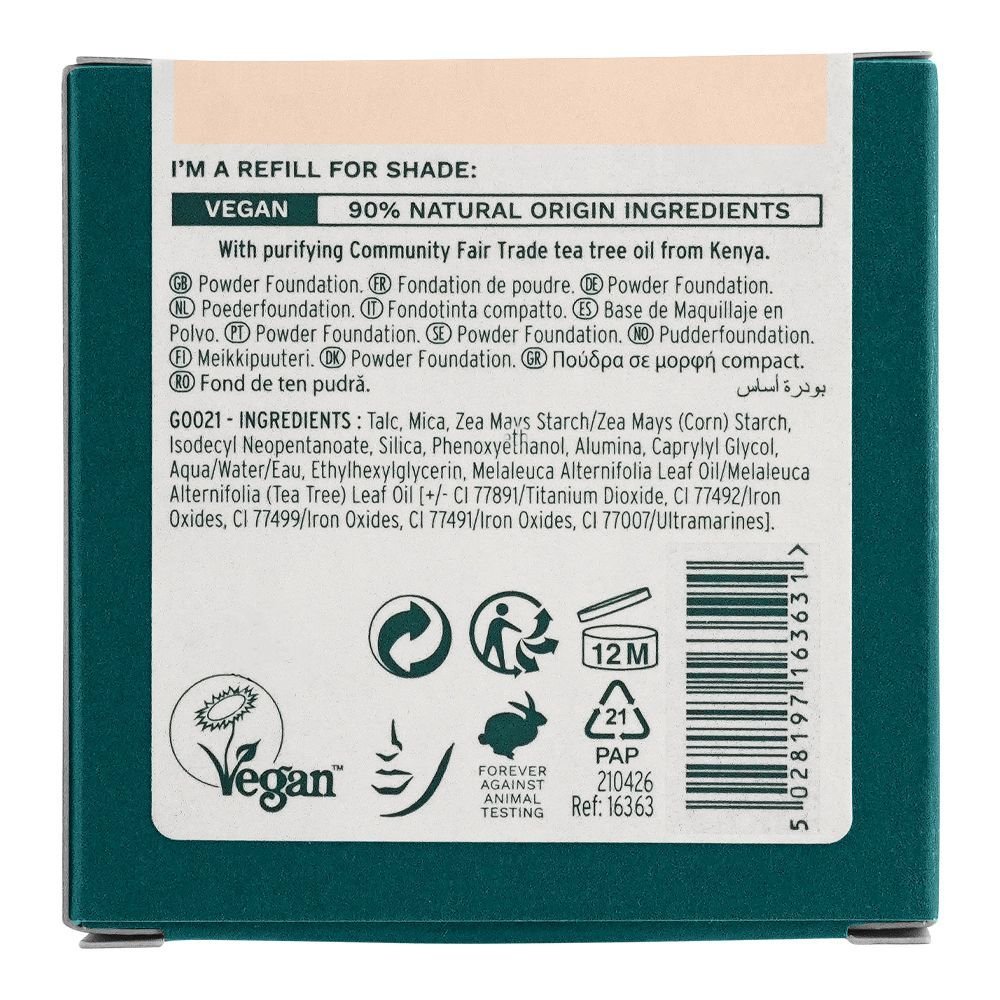 The Body Shop Tea Tree Face Base Vegan Skin Clarifying Powder Foundation Refill, Light 1W, 9g