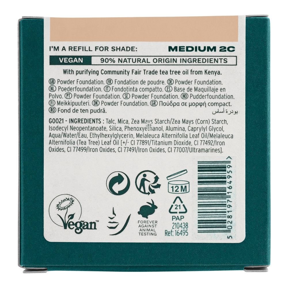 The Body Shop Tea Tree Face Base Vegan Skin Clarifying Powder Foundation Refill, Medium 2C, 9g