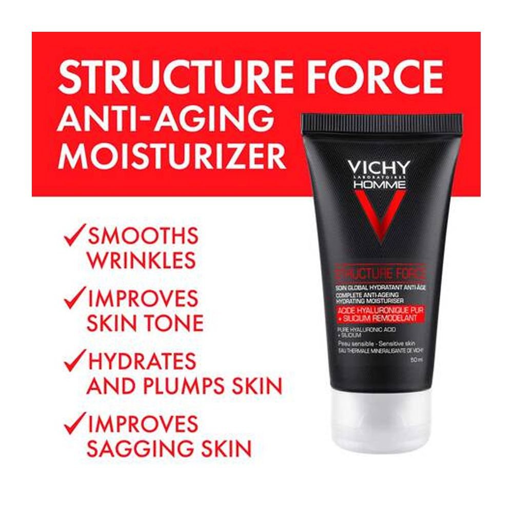 Vichy Homme Structure Force Hydrating Moisturizer is a comprehensive anti-aging solution specifically designed for men’s skin. This innovative formula addresses the unique needs of male skin, targeting multiple signs of aging to help you maintain a youthful and revitalized appearance. It provides long-lasting hydration to combat dryness and leave skin feeling refreshed and supple.