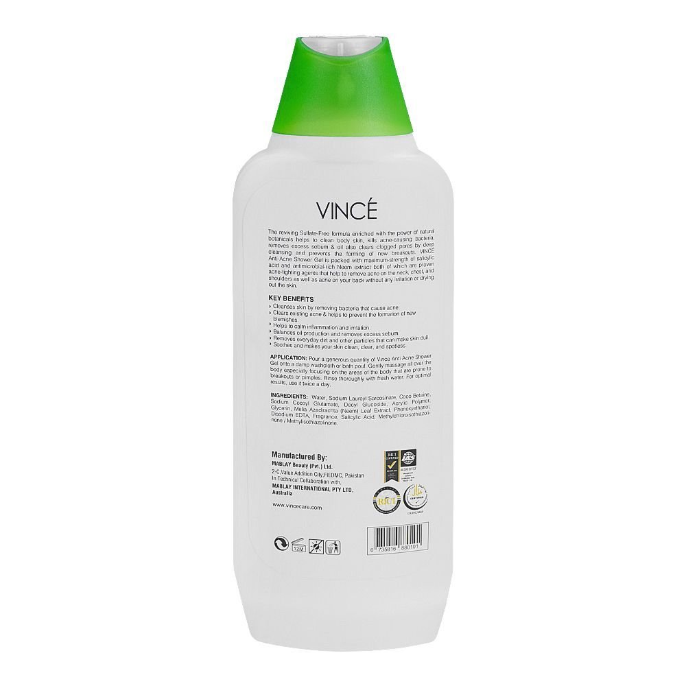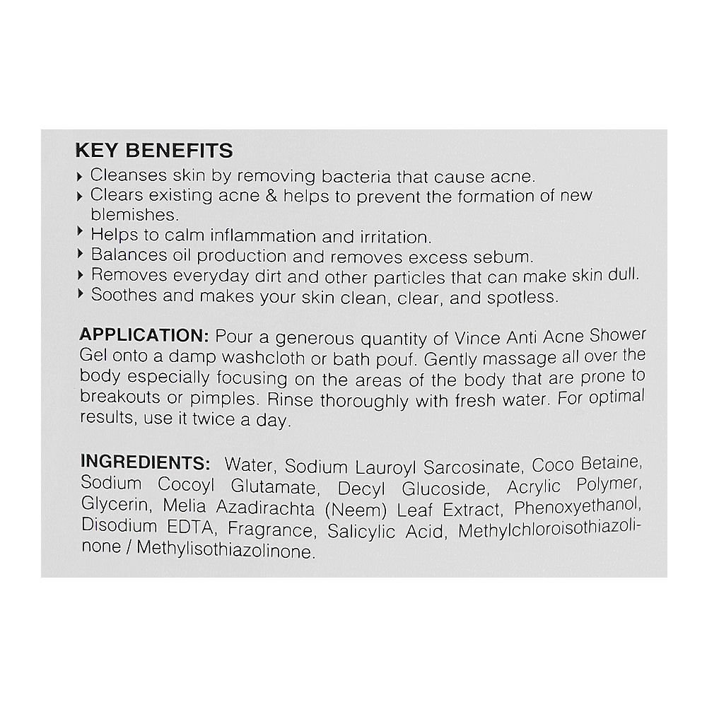 Vince Anti-Acne With Salicyclic Acid & Neem Extract Sulfate Free Shower Gel, 300ml