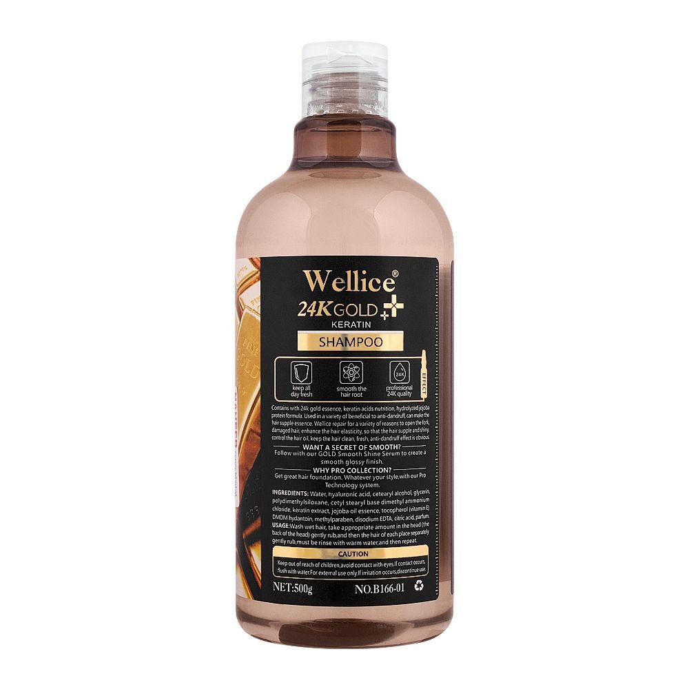 Wellice Professional 24K Gold Keratin Ampoule Care Serum Shampoo, 500ml