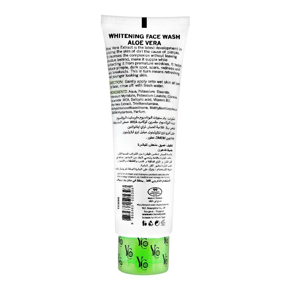 Living in a polluted and dusty environment can damage your skinâs condition. YC Whitening Aloe Vera Extract Face Wash is enriched with aloe vera extracts for essential nourishment to the skin. It cleanses away the dirt, which can cause pimples and acne. Clearing away the pores deeply, it also enhances your complexion without leaving any residue behind, making skin soft, smooth and textured. Protecting against premature wrinkles, it also helps reduce dark spots, scars, redness and prevents acne breakout. You can use it as your daily face wash and ensure a refreshing skin care treatment.